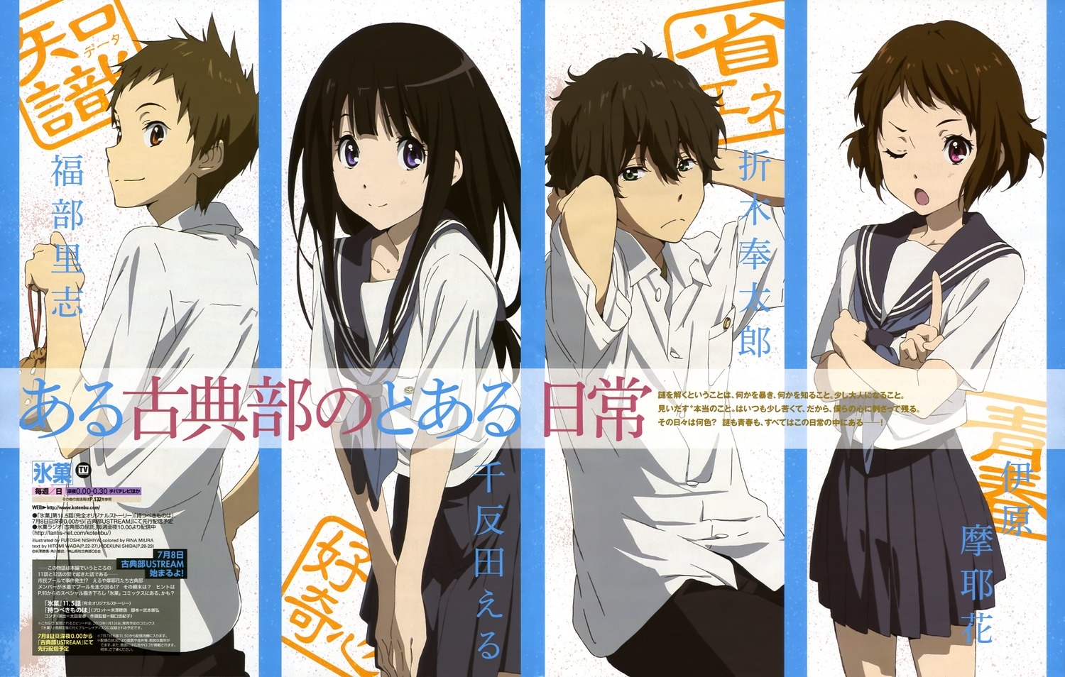 而福部里志和伊原摩耶花則是奉太郎的國中同學 在作品中分別是資料庫腳色和熱血腳色代表