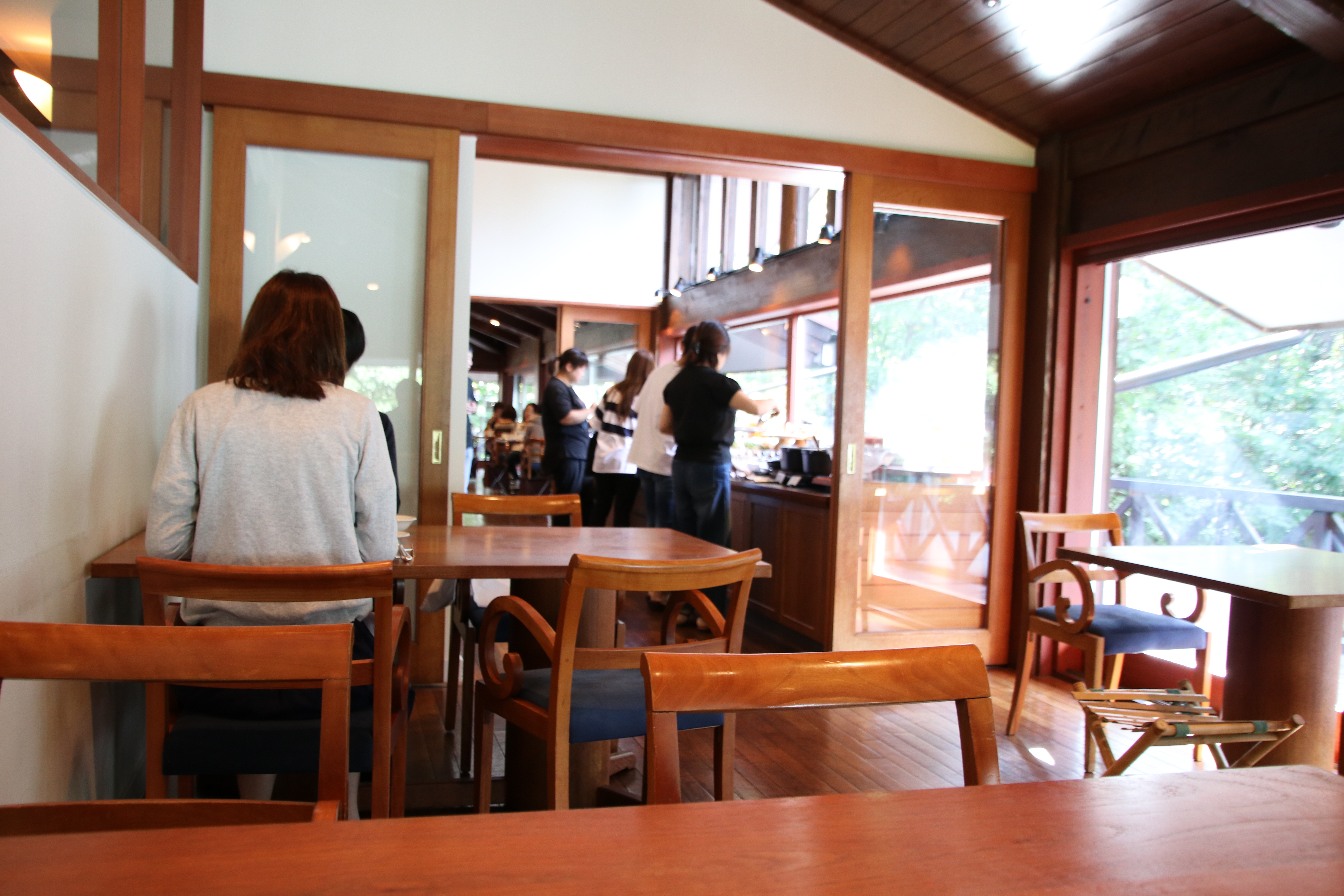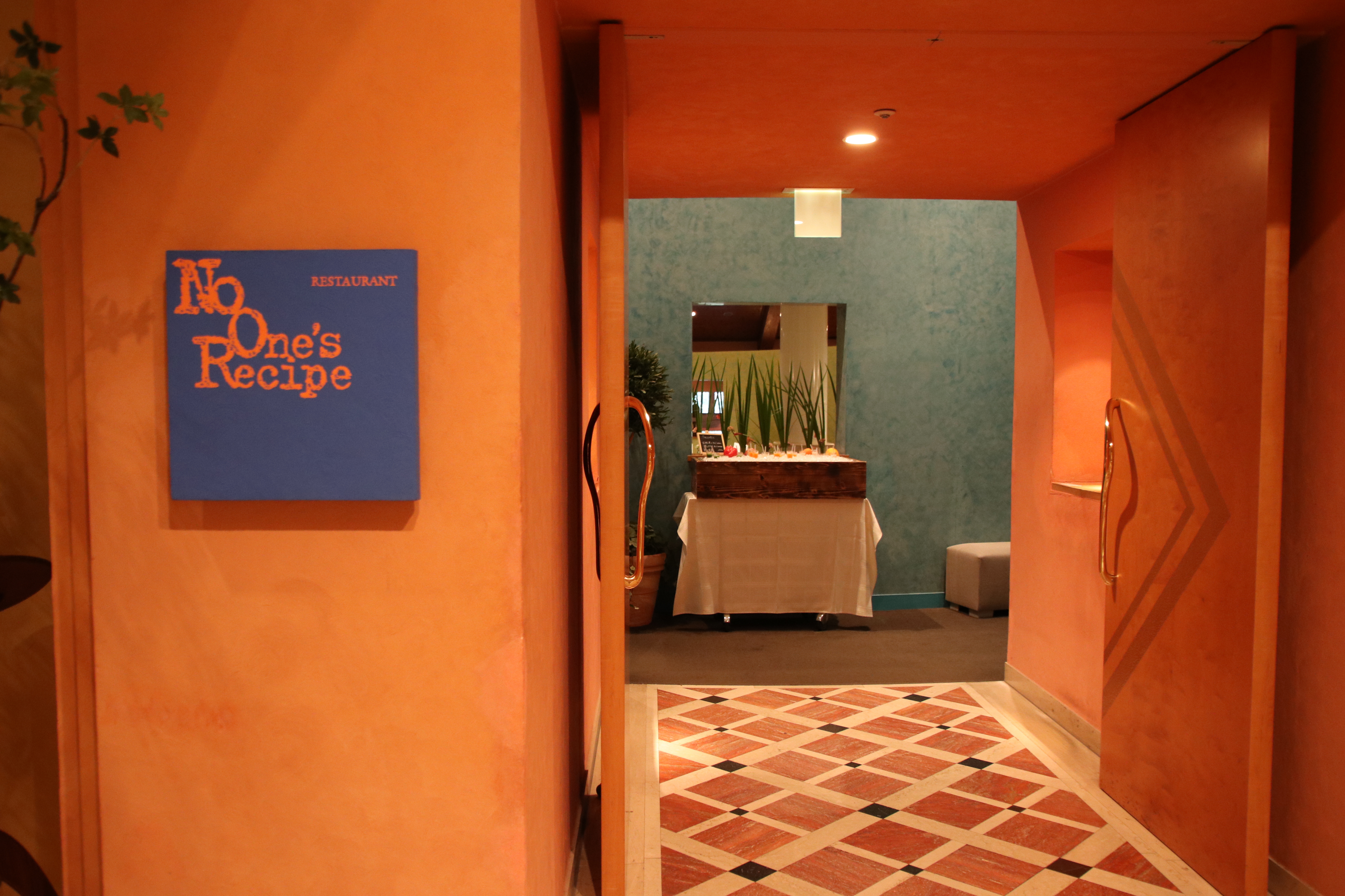 餐廳入口以橘色系作為基調 讓旅人們能夠在涼爽的輕井澤感受到溫暖的氣息