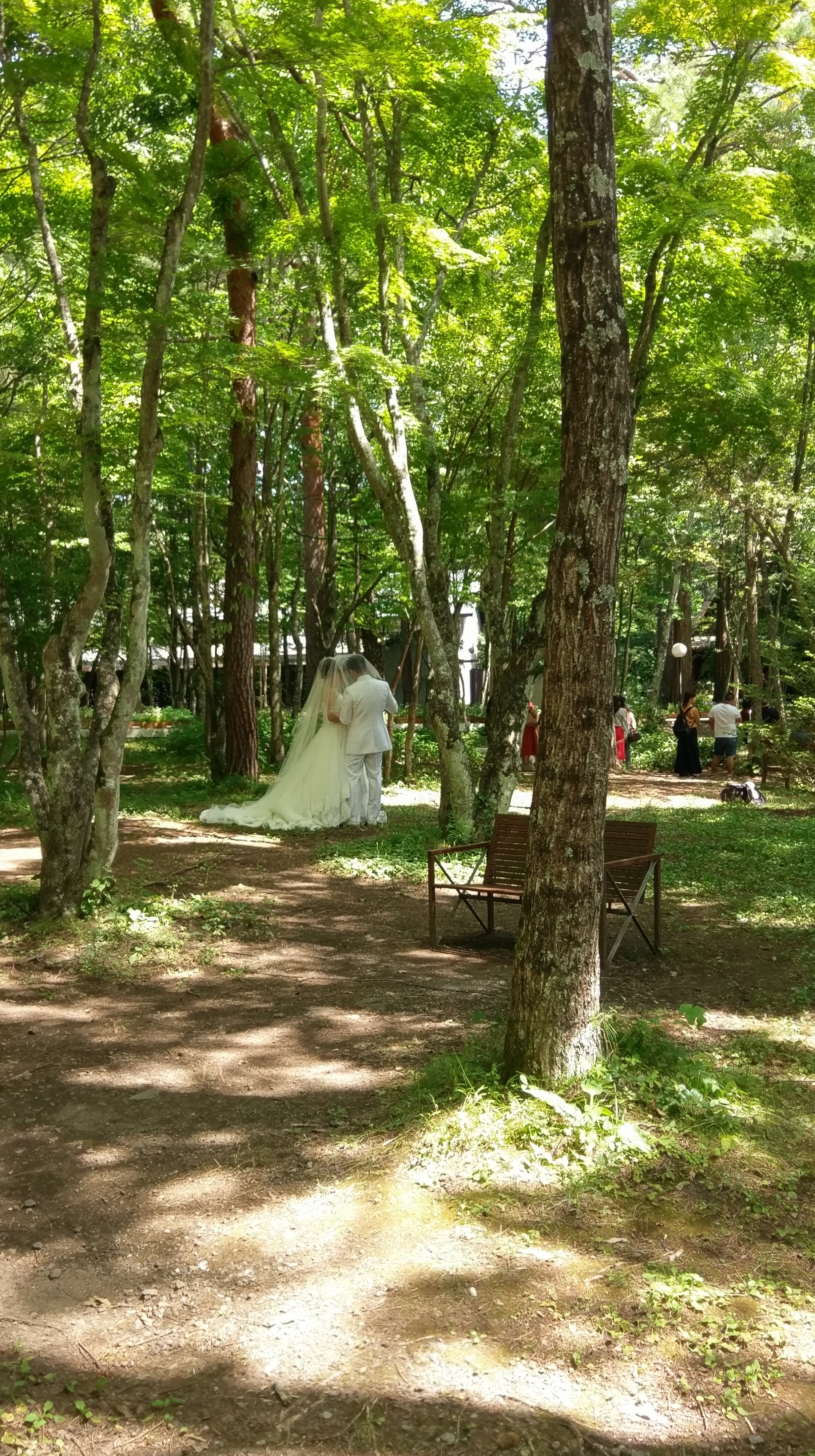 漫步之時 看到好幾組新人正在輕井澤的森林間拍婚紗 也有人在一旁的小教堂進行婚禮前的準備