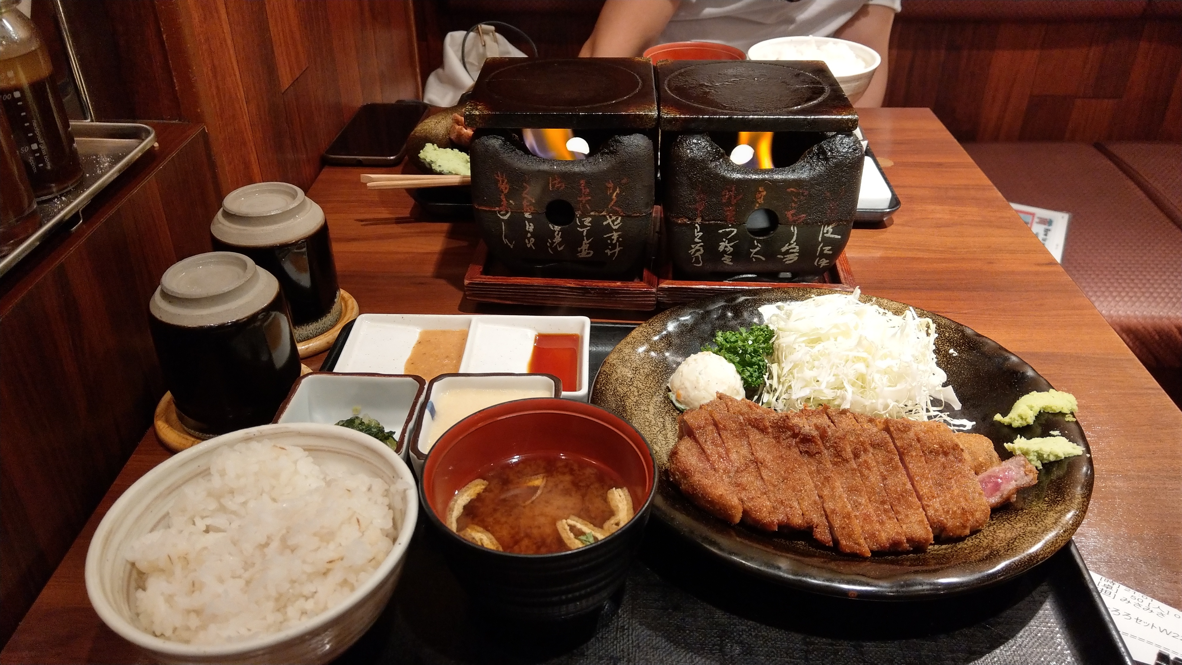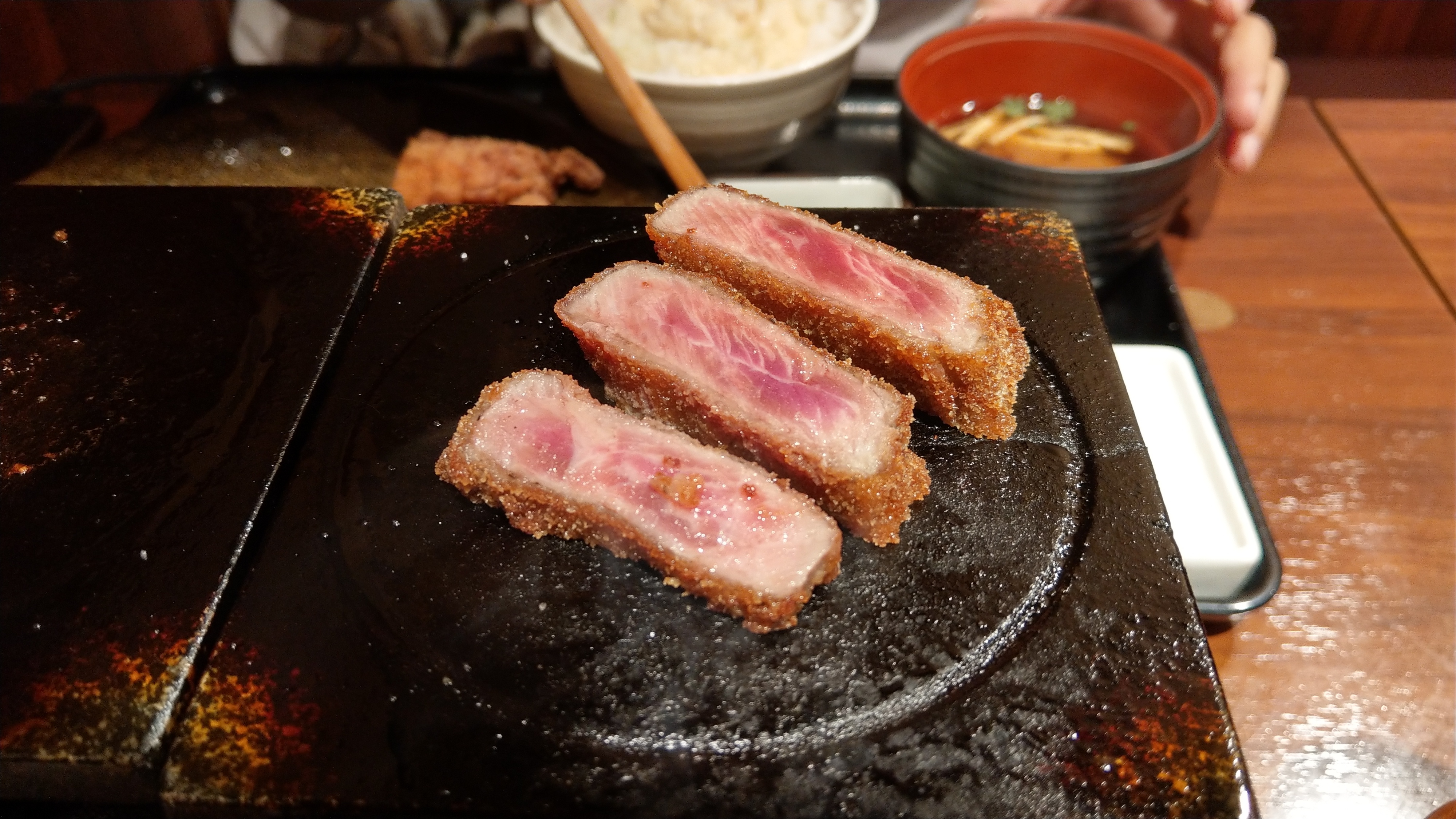 我們倆晚餐享用的是牛かつ もと村 新宿店 是最近大人氣的炸牛排專門店 還排了30分鐘的隊
