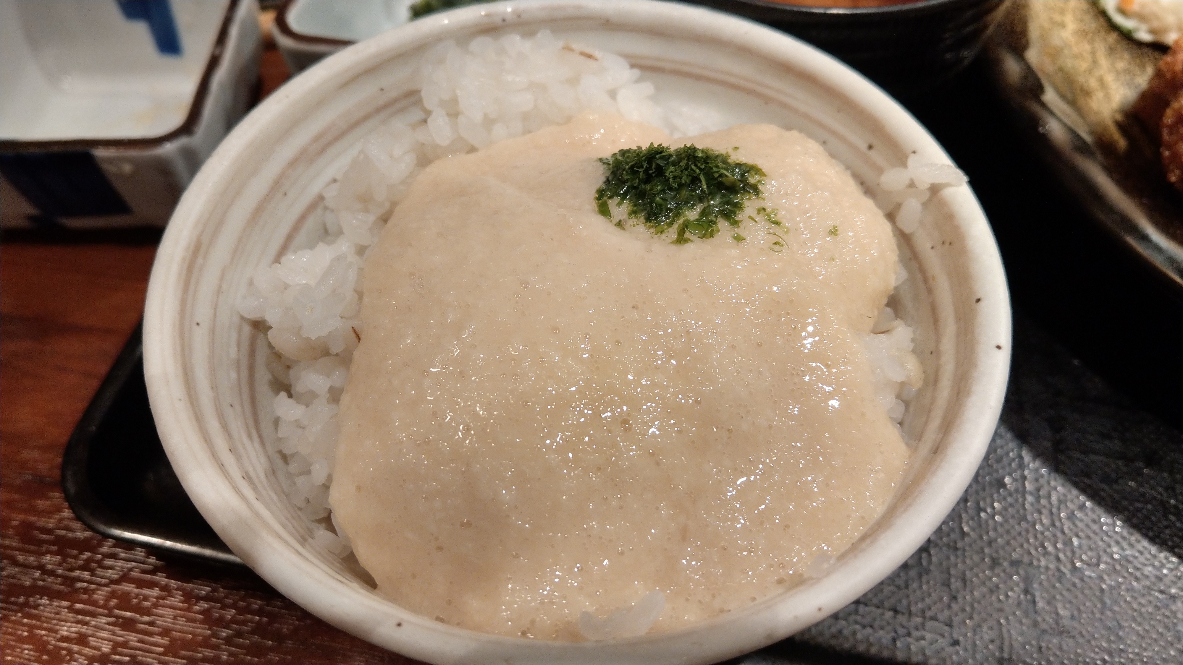 將炸好的牛排再放上熾熱的石板上加熱 配上黏呼呼的山藥飯 可說是相當開胃啊