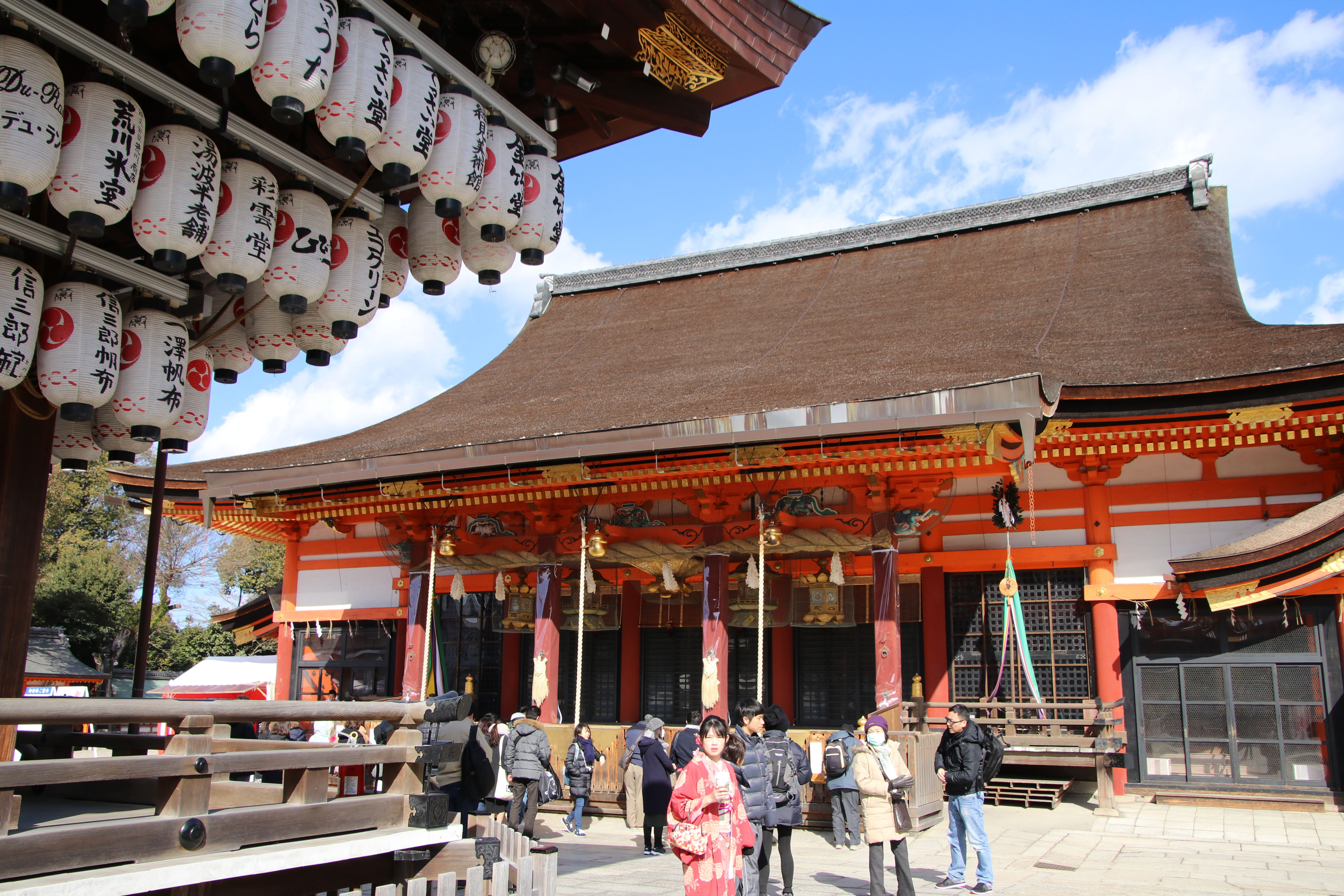 睡到自然醒後,兩人來到了祇園,第一站就先從八阪神社開始散策之旅。