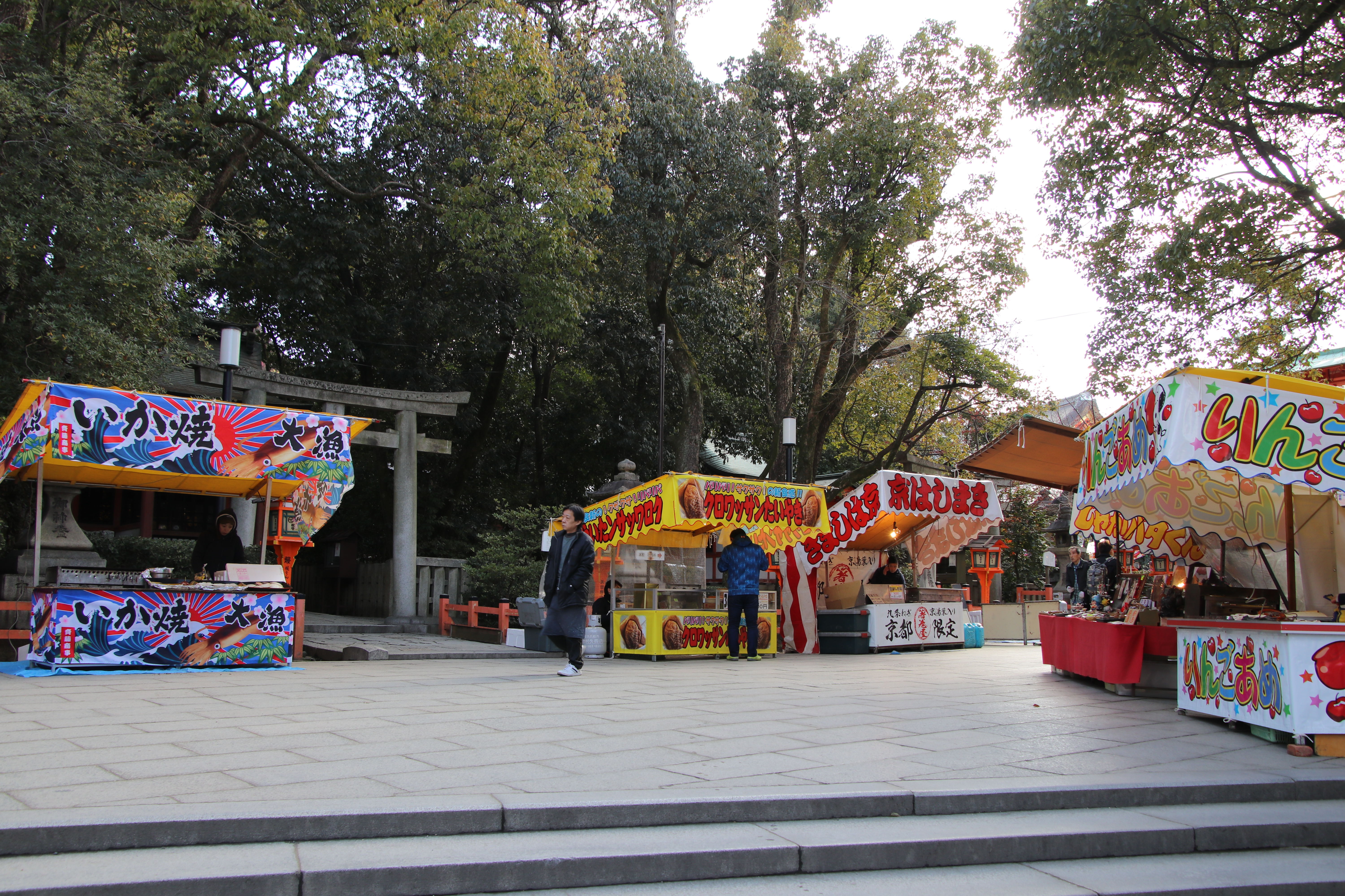 神社境內上還留有節分祭的許多攤位,今天結束就要撤除。